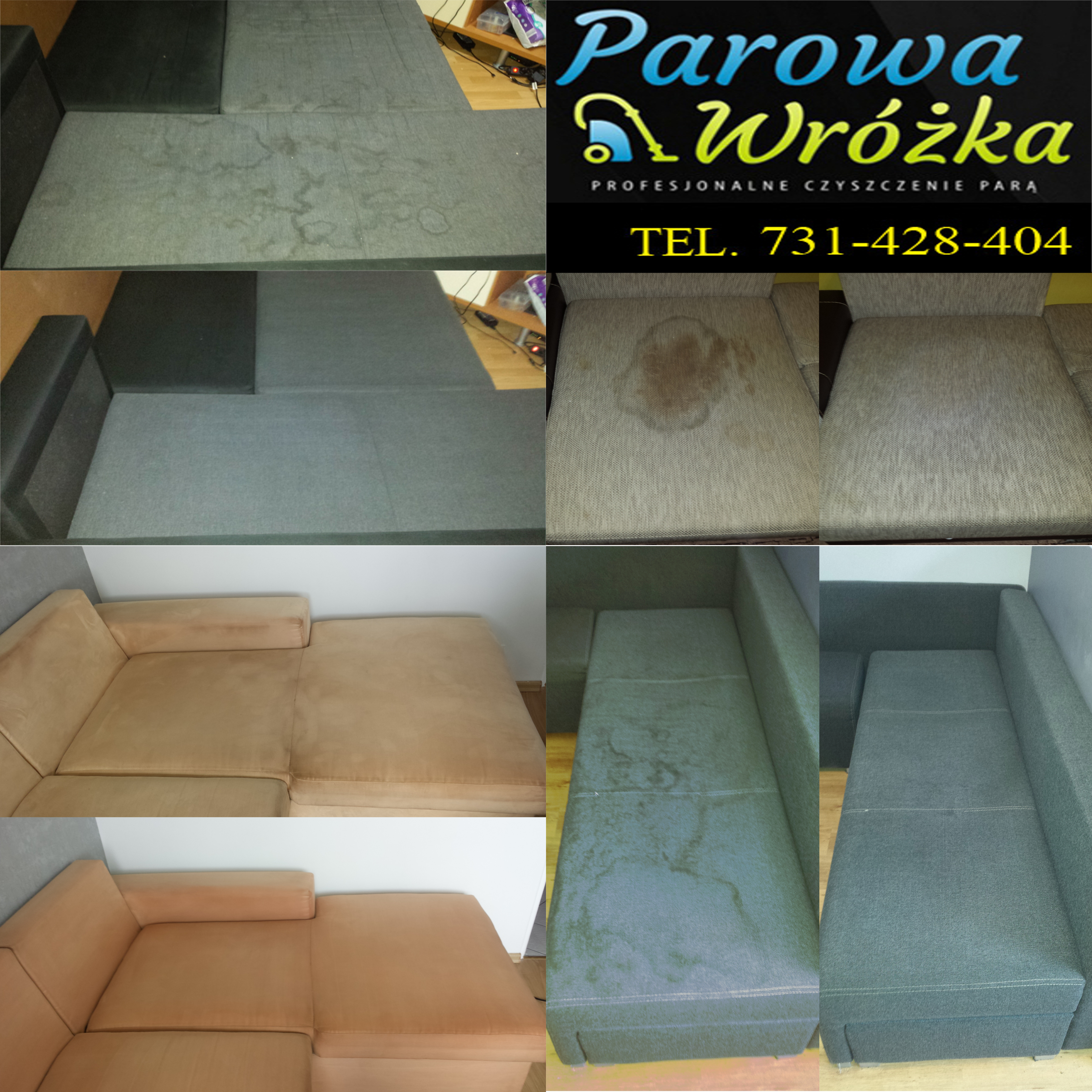 Pranie i dezynfekcja parowa tapicerki meblowej, dywanów i wykładzin, wózków dziecięcych i fotelików samochodowych u klienta. Zabija Bakterie Wirusy i Roztocza!!! Zadzwoń 731-428-404.